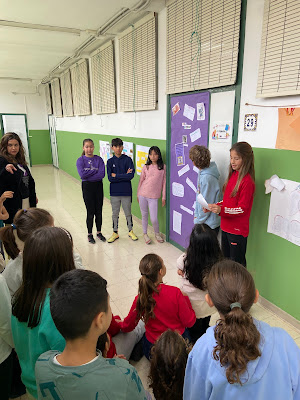 El pasado viernes, nuestro alumnado de 5º estuvo en el centro cívico El Tejar del Mellizo exponiendo el trabajo realizado a lo largo del curso en el proyecto "Imaginemos Nuestros Barrios”. Como en años anteriores, hemos contado con el asesoramiento de Manuela Moreno, técnica del Ayuntamiento.